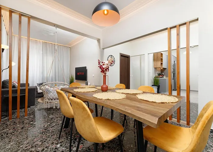 Ubicado a unos 10 minutos en coche del Monasterio Franciscano de Agios Fragkiskos, se sitúa a unos cuantos pasos de la parada de autobús Agiou Nektariou. La Casa de Eleftherios Venizelos se sitúa a 2 km del Dk Central Apartment In The Heart Of The City y el aeropuerto Internacional de La Canea, a menos de 18 minutos en coche. La Playa Nea Chora se encuentra al lado de este apartamento de 90 m².